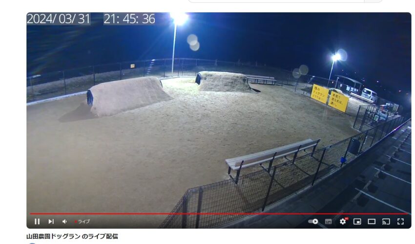 ドッグランに防犯カメラを設置の際に混雑状況をリアルタイムで確認できるよう、一台をYoutubeで配信用カメラを導入しました